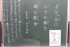 ブログ と 黒板標語小さな春を ポケットに