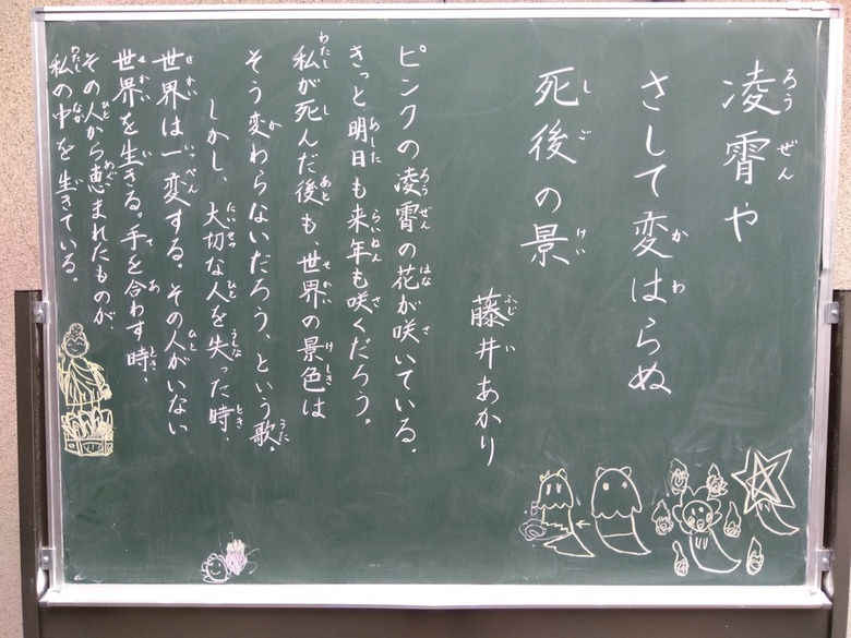 道を歩くと、花が咲いていた。淡いピンクのろうぜんの花。きっと明日も咲くだろう。私が死んでいなくなった後も、世界の景色はそうかわらない。「凌ぜんや さして変はらぬ 死後の景」と藤田あかりさんは自分のいなくなった世界を歌った。