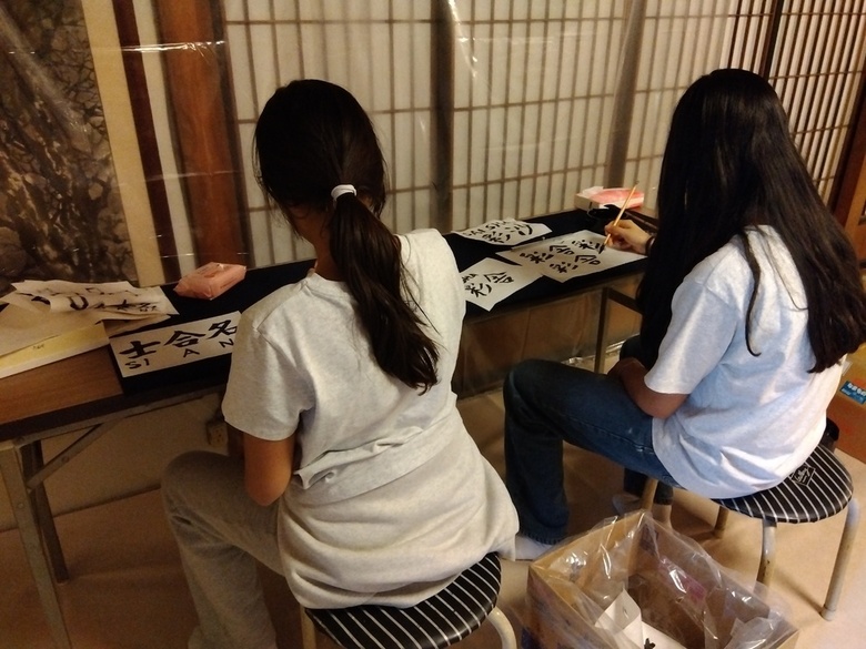 A tourist from India asked if they could learn calligraphy. They practiced for about 15 minutes and then wrote their names before leaving. Saisha = 彩沙, Siana = 士合名 . Both of them wrote beautifully. Welcome to Shōzōin. Dhanyawad。
